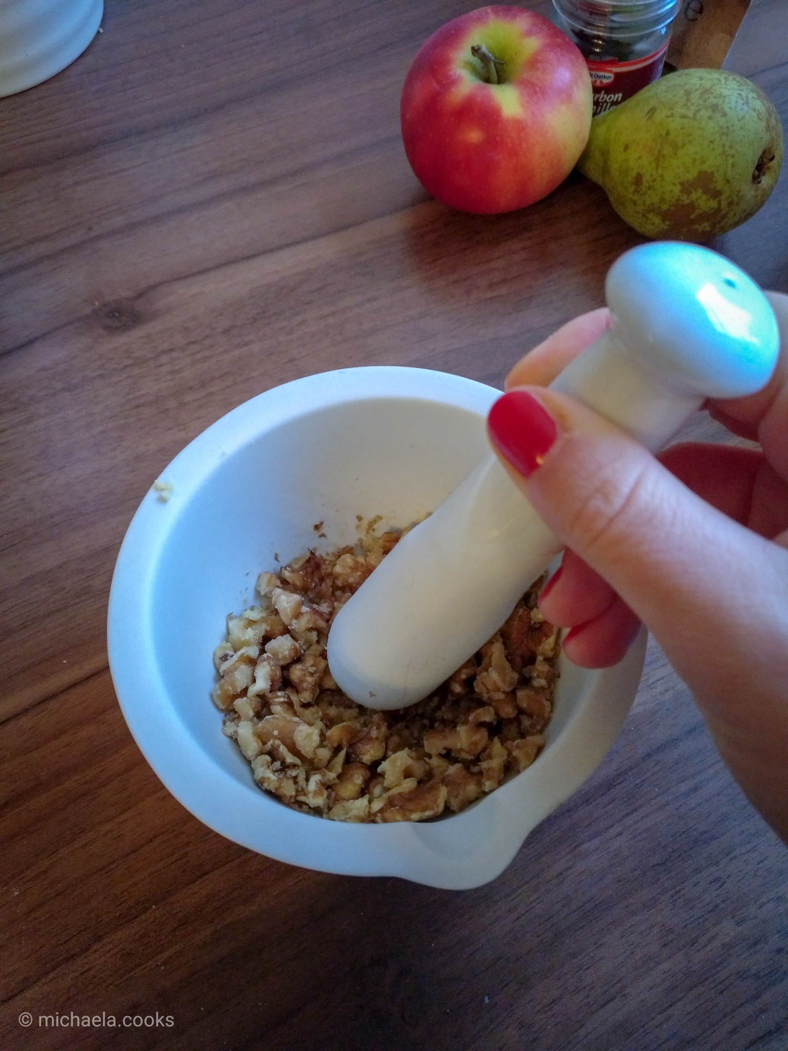 Depending on the season you can vary in the fruit and nut selection. In example plums with hazelnuts or peaches with almonds. Try it out!